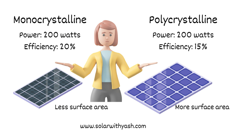 I have 2 solar panels one is 200 watts monocrystalline solar panel with 20% efficiency and another is 200 watts polycrystalline solar panel with 15% efficiency.