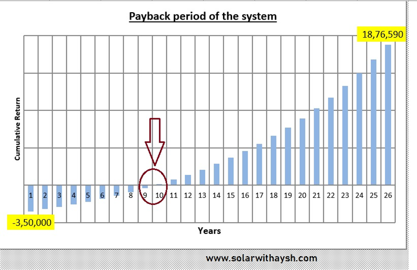 - Cost of solar electricity = Rs. 3.5 per unit (cheaper than the grid electricity)