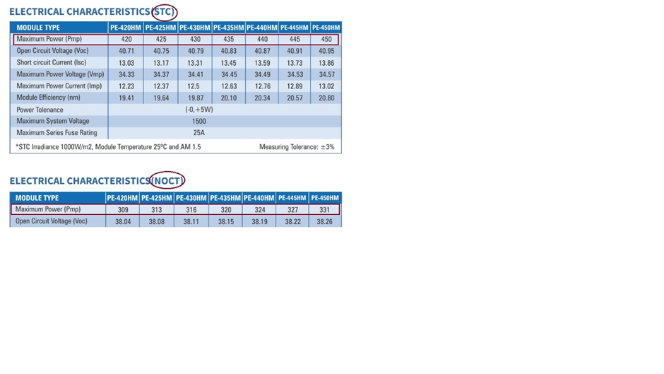 The power output of the solar panels is tested under ideal conditions when things are favorable such as: