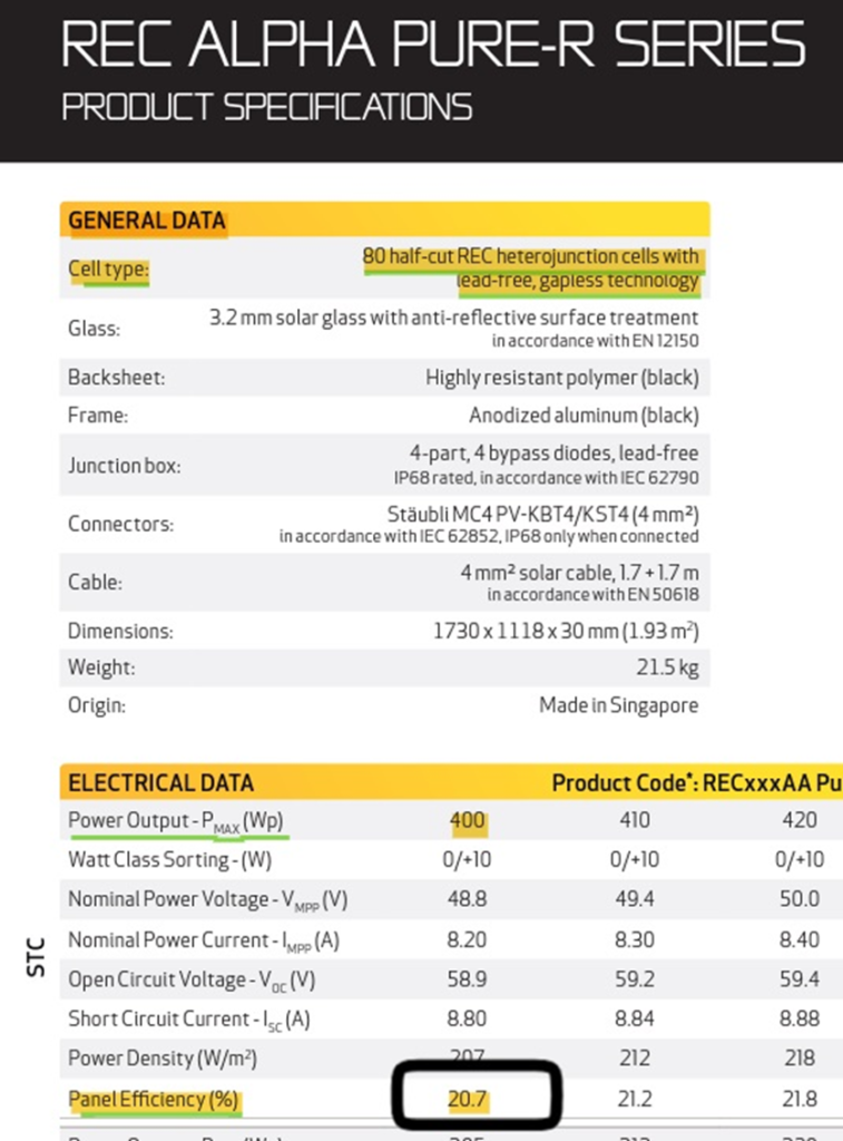 The Efficiency of a 400-watt REC solar panel: 20.7%