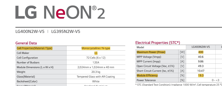 LG-400-watt solar panel efficiency: 19.3%
