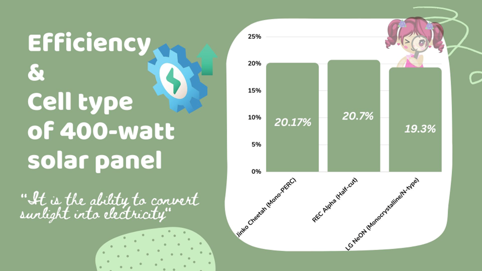 Let us summarize the efficiency of the 400-watt solar panel in the following chart: