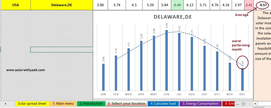 - Delaware (USA): latitude 39 ᴼ North PSH: 4.57